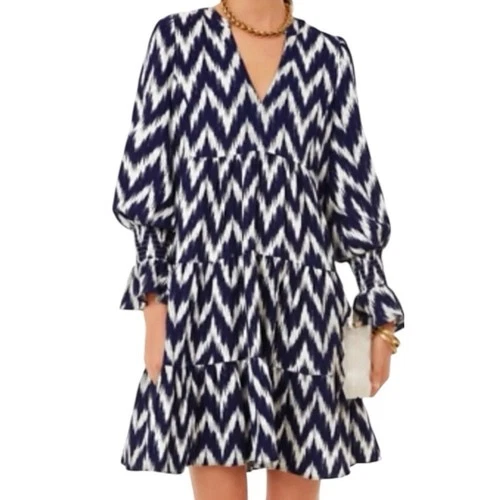 Pomander Place Navy Blue Ivory Ikat Kenzo Dress Size Large