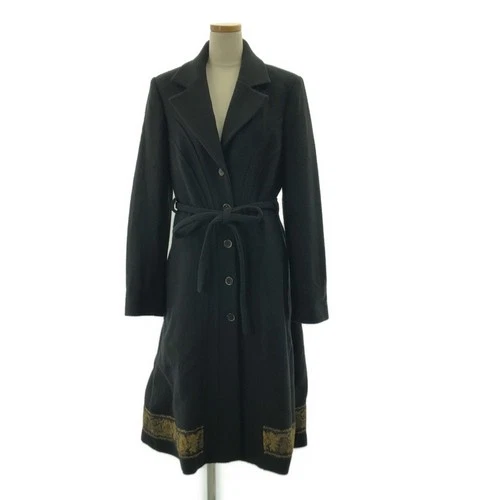 KENZO | Wool Embroidery Belted Single Overcoat Pattern Lined 40 Used KLDR-0