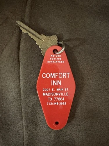 Vintage Comfort Inn Hotel Key Fob Room 100 Madisonville TX Red Key Tag