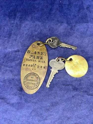 Blaney Park Michigan MI Brass Key Tag Fob for Bear Den with Key 1926-1940 +