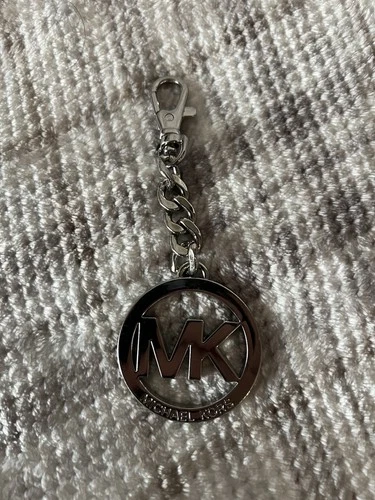 Michael Kors Silver Tone Key Chain Keychain Logo Circular Bag Charm Pendant Fob