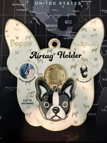 XO POPPY French Bulldog/Boston Terrier Apple AirTag Holder Clip On Keys