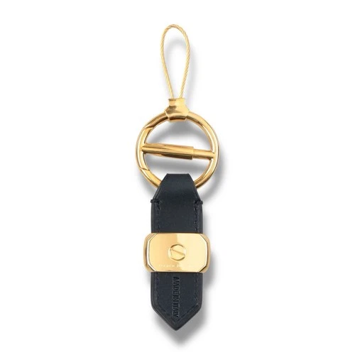 Dunhill Duke Attache Leather Metal Key Ring Black And Gold Luxury Logo Keyfob