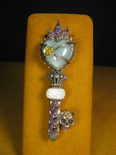 BARBARA BIXBY HEART FLAME SKULL KEY AMAZONITE GEMSTONE FLOWER Enhancer Pendant
