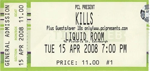 Kills Edinburgh 15th April 2008 Concert Ticket Stub
