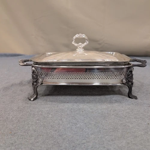 Vintage Sheridan Silver Plated Chafing Dish Anchor Hocking Fire King Glass Dish