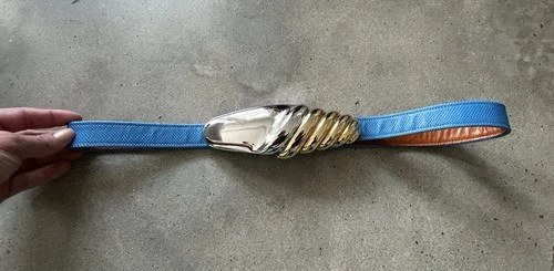 Vintage Alexis Kirk Belt Two Tone Gold Silver Buckle Aqua Glam 80’s
