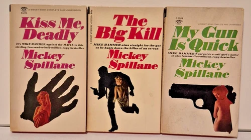 VIntage Lot 3 Mickey Spillane Paperbacks 1960s Big Kill Kiss Me Deadly Gun Quick