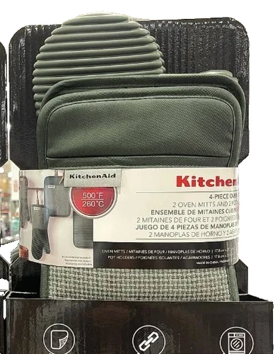 KitchenAid 4 Piece Silicone Kitchen Set Kitchen Aid Oven Mitts Home Gray NEW