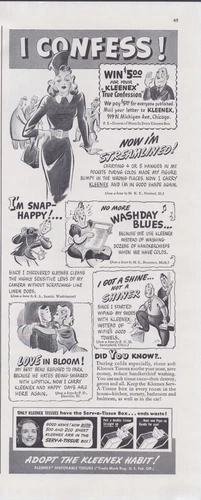1940 Print Ad Kleenex Tissue I Confess! Win $5.00 for your Kleenex True Confess