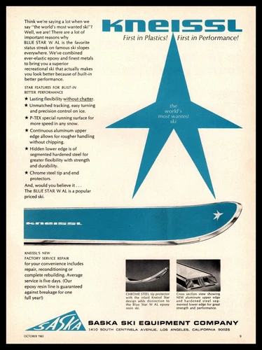 1965 Kneissl Blue Star Snow Skis Saska Ski Equipment Co. Los Angeles CA Print Ad