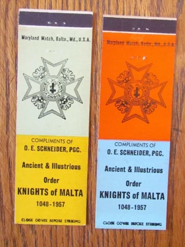 FRATERNAL KNIGHTS OF MALTA MATCHBOOK COVERS: O. SCHNEIDER EMPTY MATCHCOVERS -B9