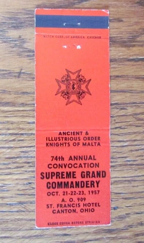FRATERNAL KNIGHTS OF MALTA MATCHBOOK COVER: CANTON, OHIO 1957 MATCHCOVER -B9
