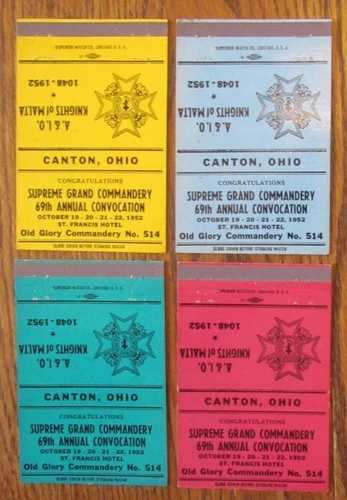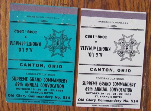 FRATERNAL KNIGHTS OF MALTA MATCHBOOK COVERS: CANTON, OHIO 1952 MATCHCOVERS -B9