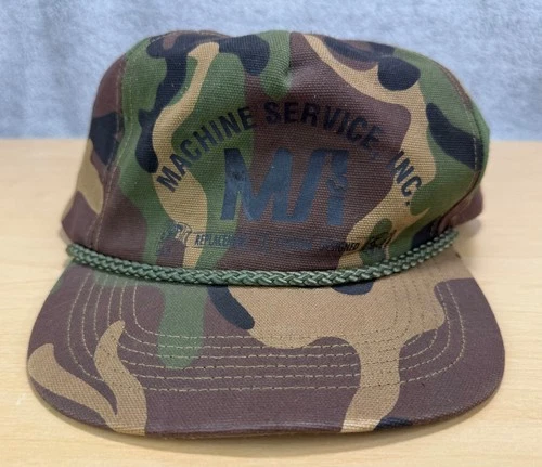 Vintage 80s Machine Service Inc. Camo Trucker SnapBack San Sun Adjustable Hat