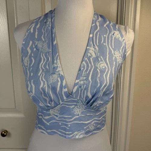 Cider Women Crop Top Sz M Halter Knot Light Blue and White