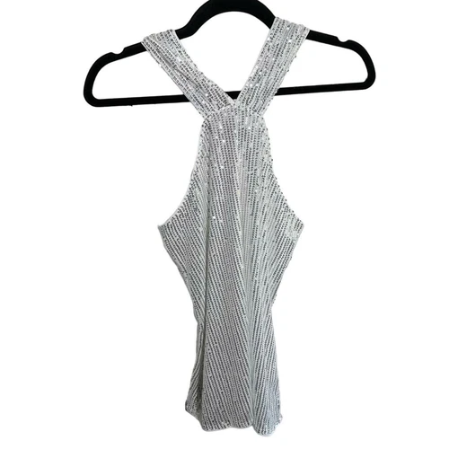 NEW GRACE KARIN Sequin Sparkle Tank Tops Halter Neck Knot Silver Size Small