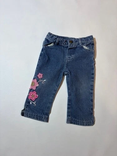 Koala Kids Baby Girl Denim Jeans 12M Floral Embroidered Pink Vintage