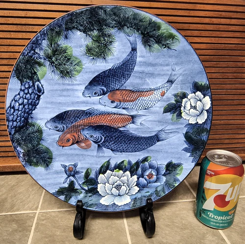 Japanese Sun Ceramics . 12.5" . Toyo Koi Fish Pond. Porcelain . Charger Platter