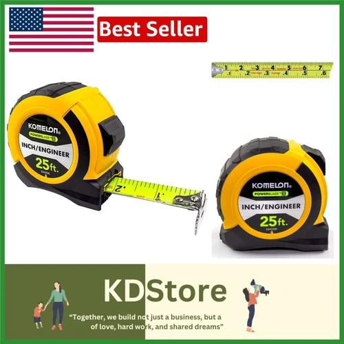 Komelon Powerblade II 25' Engineer Tape Measure - High Visibility, Double-Sid...