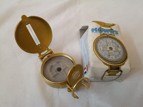 Vintage KONUS Engineer Directional Compass - gold metal - Made In Taiwan