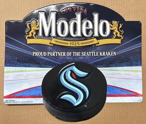 Cerveza Modelo Proud Partner of the Seattle Kraken Embossed Tin / Metal Sign.