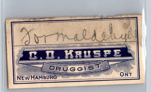 Vintage C.D. Kruspe New Hamburg Pharmacy Label Formaldehyde Apothecary Oddity