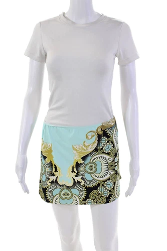 Kuny Barcelona Womens Printed Mini Skirt Blue Combo Size 8