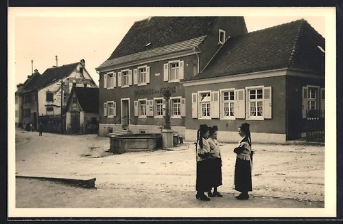Postcard Britzingen, Gasthaus zur Krone, bes. Kuny siblings, exterior