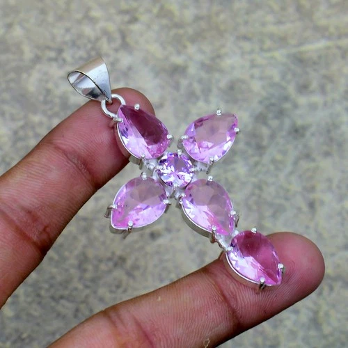 Wonderful Pink Kunzite Gemstone 925 Sterling Silver Jewelry Pendant 1.62"