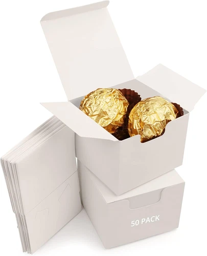 Kurtzy (50 Pack) White Kraft Gift Boxes - 5 X 5 X 5Cm -Wedding Party Favour Box