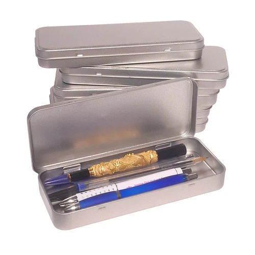 3x Empty Silver Metal Stationery Pencil Case With Hinged Lid 186 x 80 x 21 mm