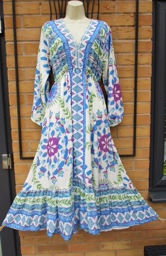 New+Tags Monsoon Saskia Geo Floral Tassels Size Large 16 18 Kaftan Dress