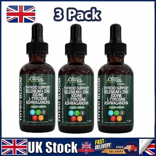 3-Pack Thyroid Support Drops Selenium Zinc Iodine- L Tyrosine Ash wagandha 60ML~