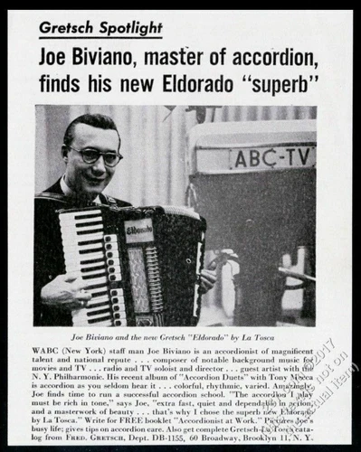 1955 Joe Biviano photo Gretsch La Tosca Eldorado accordion vintage print ad