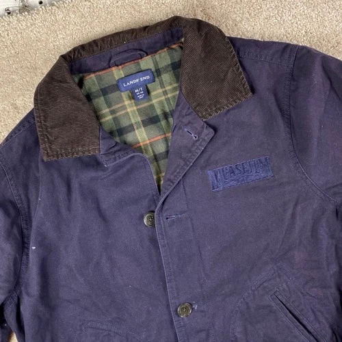 Lands End Lucasfilm Ltd Barn Jacket Mens Medium Tall Navy Blue Plaid Lined Coat