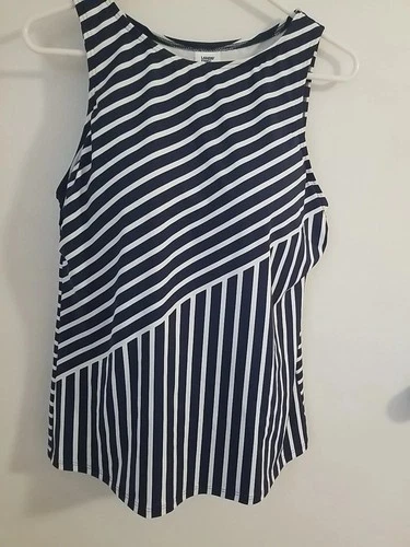 Lands End Swim Top Navy Stripe High Neck Tankini Size 14 DD