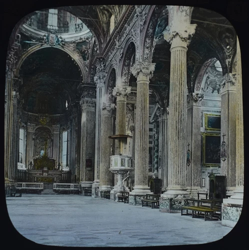 Photo GENOA ITALY CHURCH OF THE ANNUNCIATION INTERIOR C1891 Magic Lantern Slide