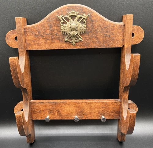 Medieval Sword Wall Rack Wooden Heraldic Coat of Arms Crest Knight Display LARP