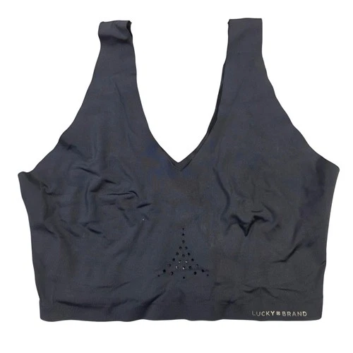 Lucky Brand Womens Black Seamless V-Neck Bralette Laser Cut Size Medium Lounge