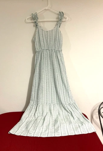 Jessica Simpson Maxi dress Medium Laser cut Aqua Green India Smock Back