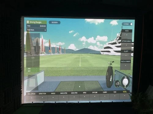 Indoor Golf Simulator Set Up. Square Golf Launcher, Gaming PC, Optoma Projector