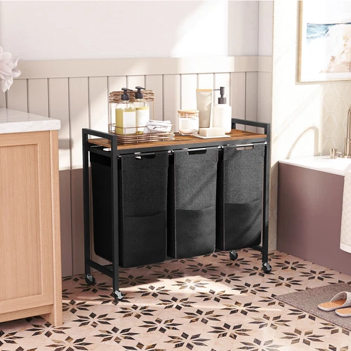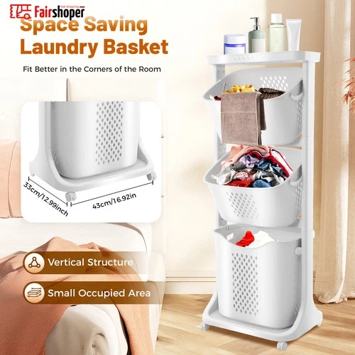 3 Tier Dirty Clothes Laundry Basket 360° Rolling Laundry Hamper Storage Sorter