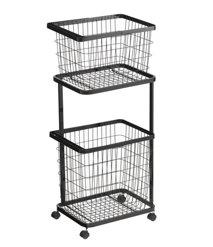 Yamazaki Home Laundry Wagon + Basket Black Large Capacity Hamper with Wheels