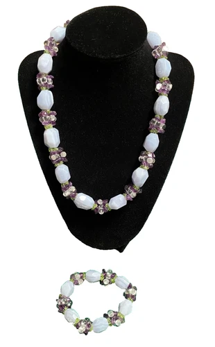 Ross Simons Lavender Lace Agate Amethyst Peridot Beaded Necklace and Bracelet
