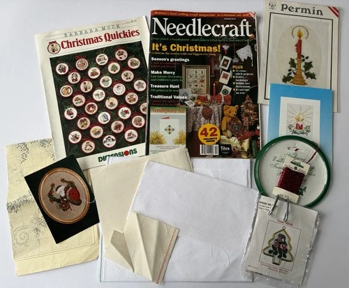 Christmas Cross Stitch Bundle Job Lot Kit Aida Patterns Lavender Lace Magazine