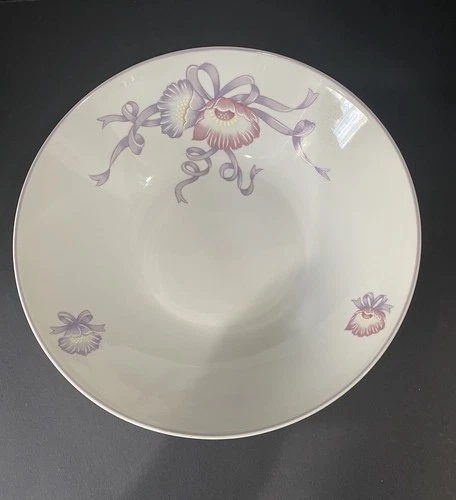 Salad Bowl Lavender Lace and Ribbons Pocelana Schmidt Brasil 9.5” Dia 2.5” High
