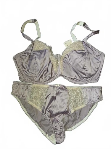 Harlow & Fox Eleanor Lilac and Lace Luxury Lingerie Set 38G bra XL panty