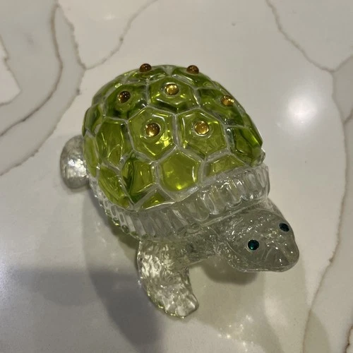 Lenox Full Lead Crystal Turtle Trinket Box Diamonds and Pearls 2005 Made Germany