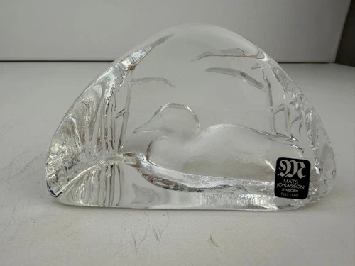 Vintage Mats Jonasson Maleras Crystal Duck Sculpture Sweden Full Lead Art Glass